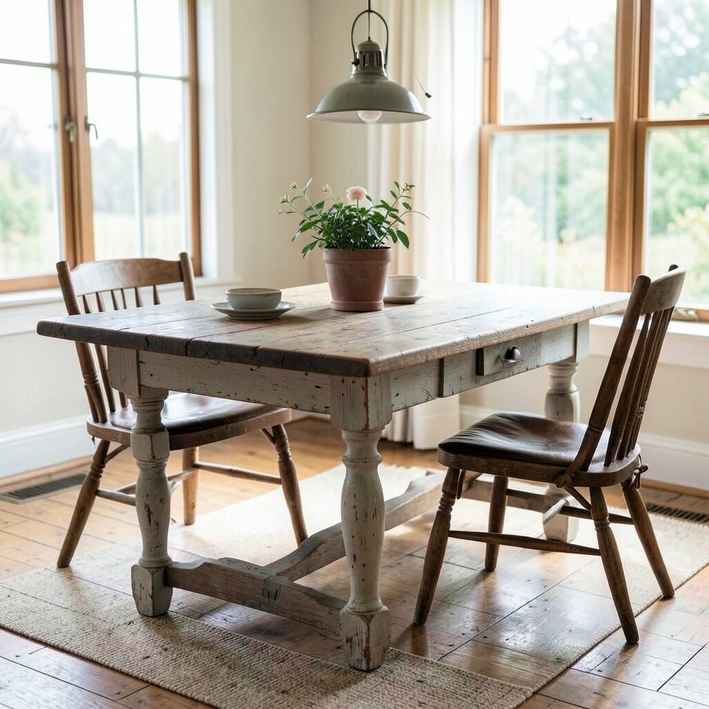 A rustic farmhouse table is perfect for family gatherings. Its solid wood construction and weathered finish add warmth and character to your dining room.
