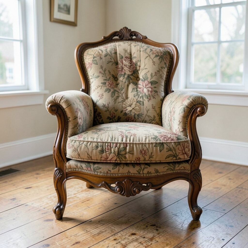 A Victorian style armchair adds a touch of opulence to your living room. Its plush upholstery and ornate woodwork make it a standout piece.