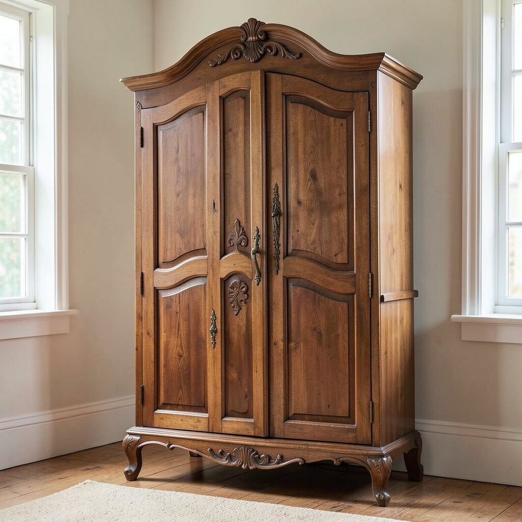 An antique wardrobe is like a treasure chest for your clothes. Its intricate carvings and quality wood make it a standout piece in any bedroom.