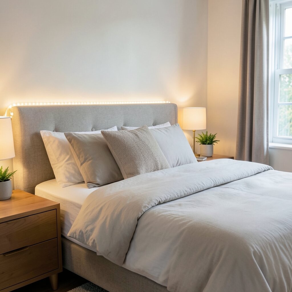 Enjoying a serene bedroom doesn’t have to be expensive. LED strips offer a cost-effective way to elevate your space.