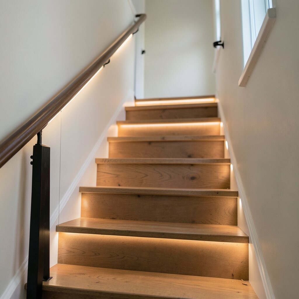 Installing LED strips here is straightforward and instantly upgrades the space. It’s a practical and stylish choice.