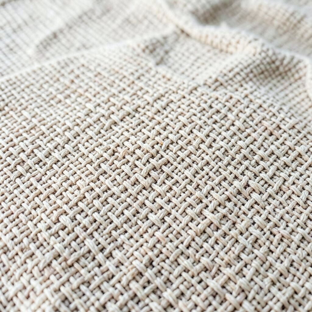 The basket weave is perfect for blankets and warm throws. Its texture invites warmth and comfort.