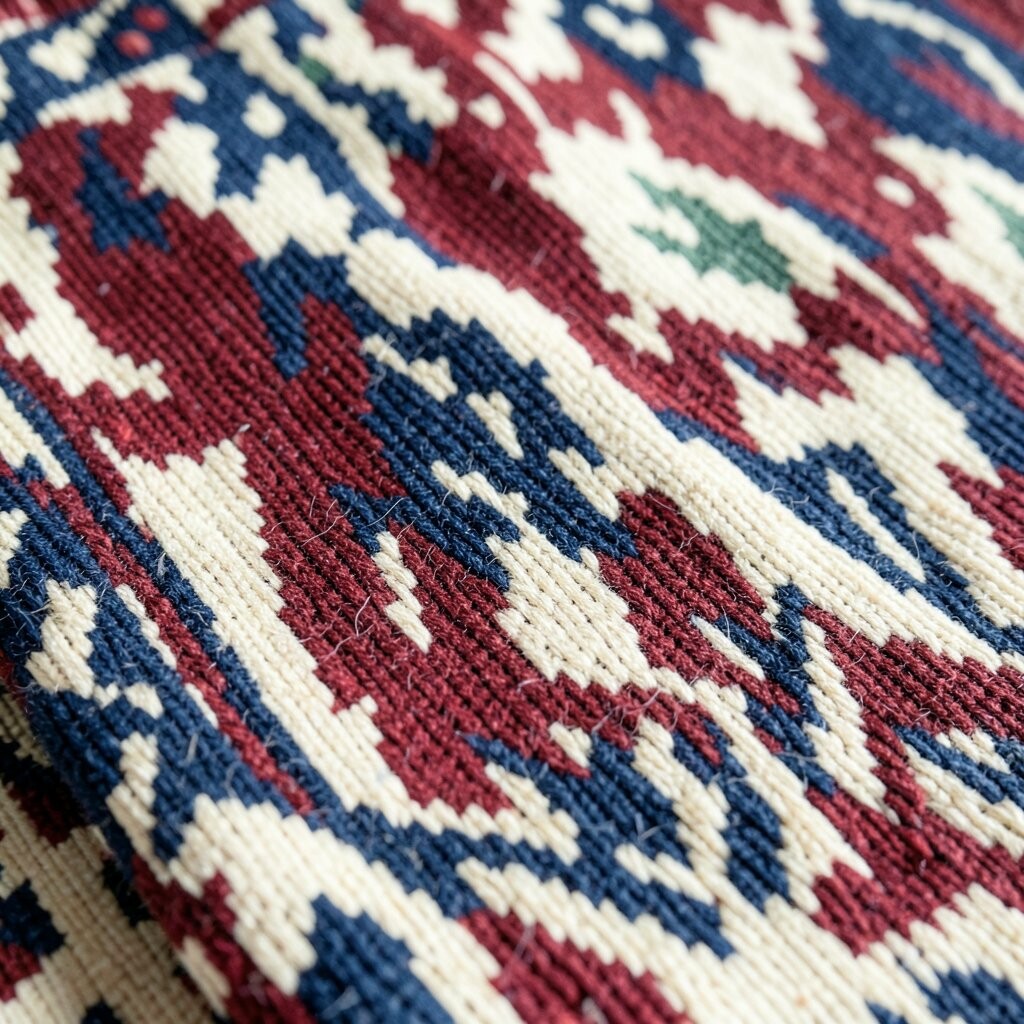 Ikat is a pattern with an exotic flair, known for its blurred, tie-dye effect. It’s like painting with threads.