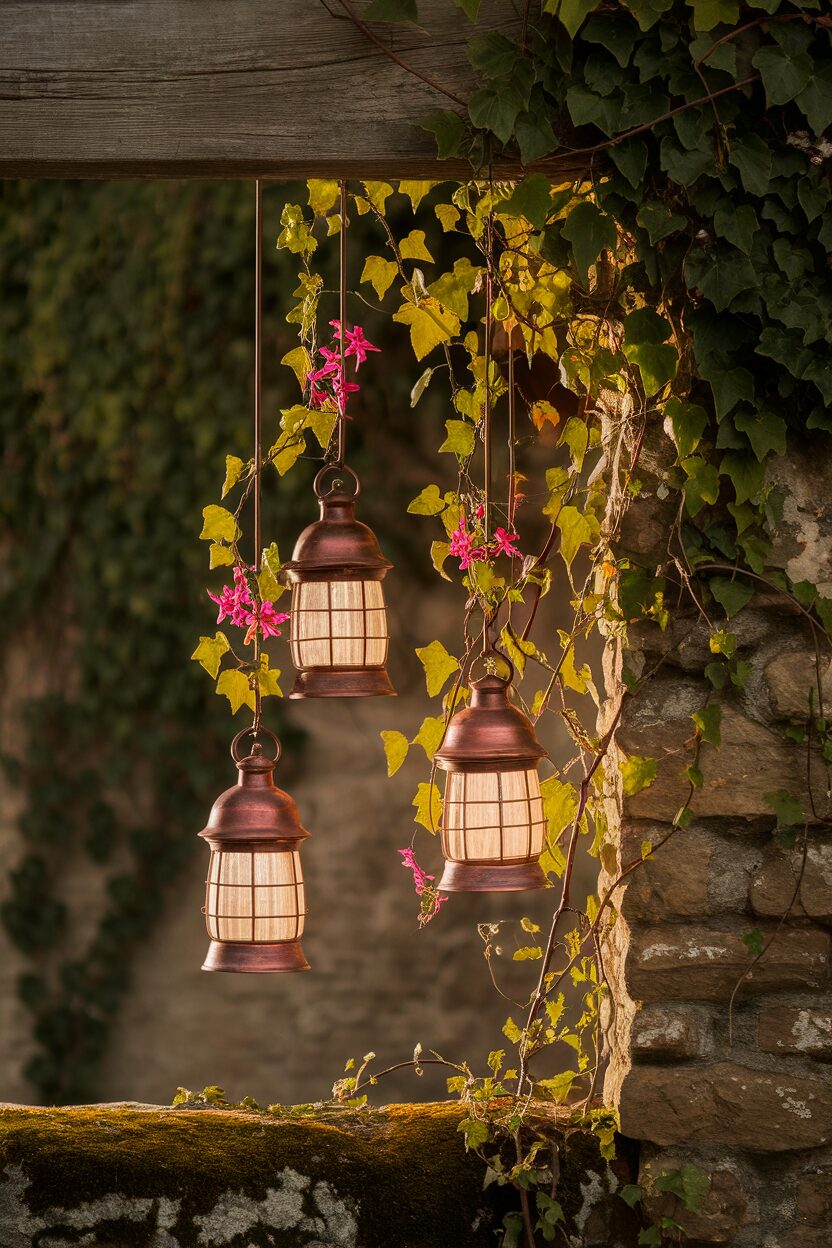 This approach uniquely combines nature with artistic lighting, enhancing both elements. Choose lanterns in varied shapes and sizes for a dynamic look.