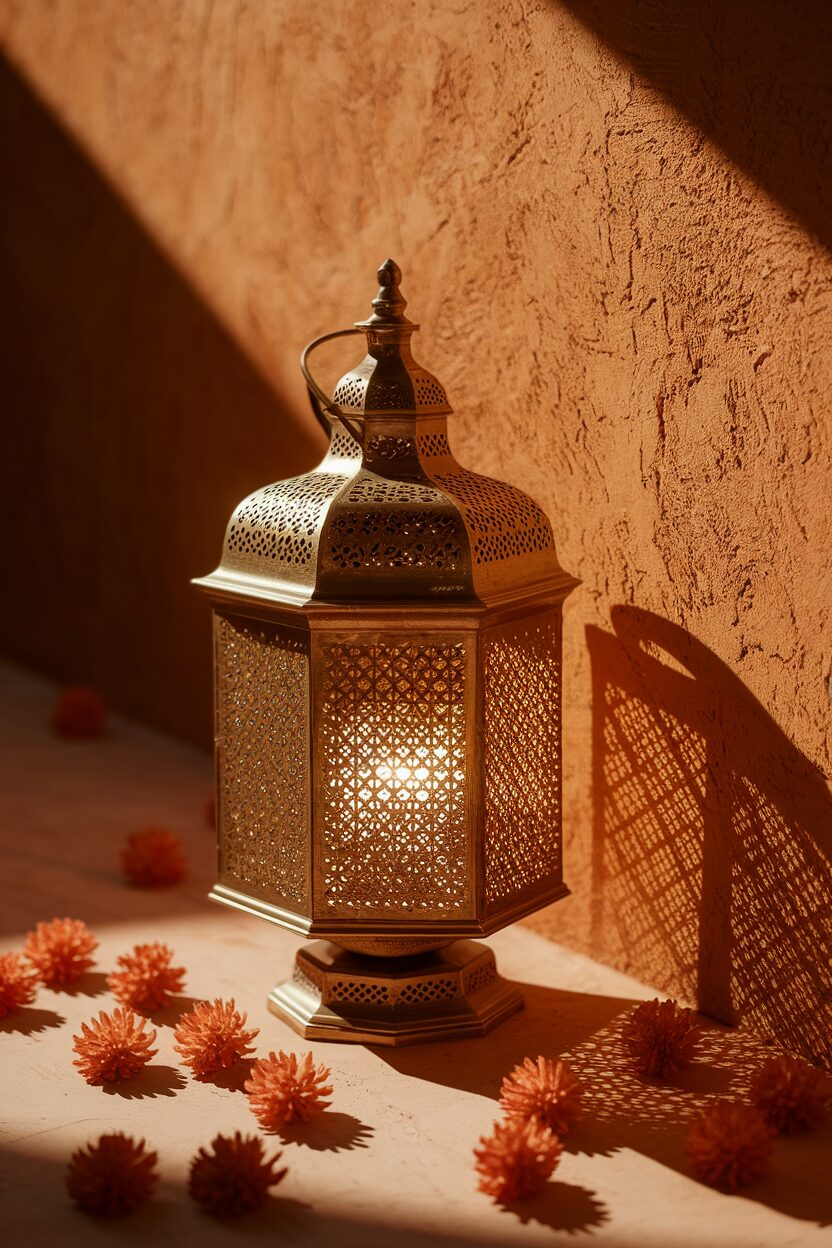 Moroccan-style lanterns are like little pieces of art that hang in your home. They have intricate designs that cast beautiful shadows.