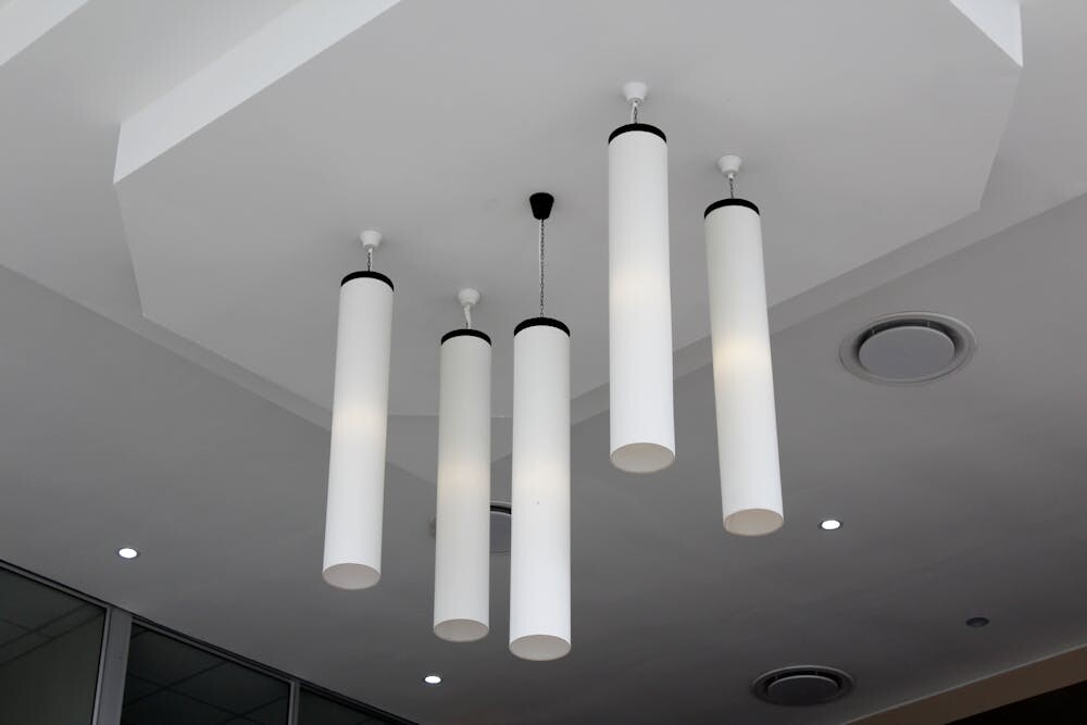 Picture sharp lines and shapes hanging from your ceiling, creating a modern look. These lights add a fun twist to any room, making it feel like a modern art gallery.