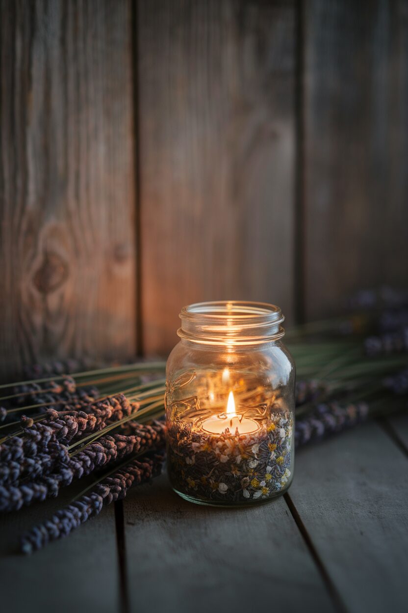 Mason jars are a lovely way to add rustic charm to your home. Their transparent glass allows the candlelight to shine beautifully, creating a warm and inviting atmosphere.