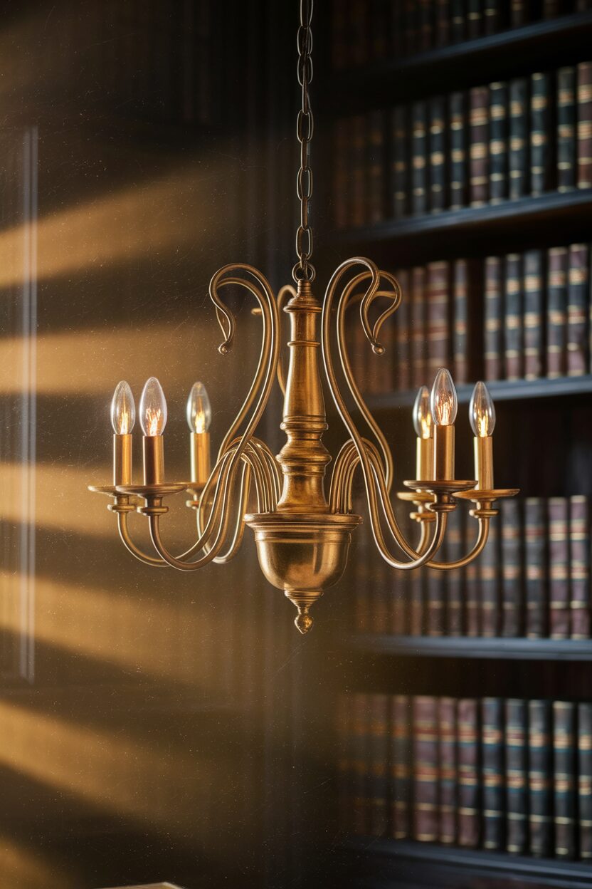 A vintage brass chandelier with curved arms can be the jewel of any room. These fixtures offer timeless beauty and elegance.