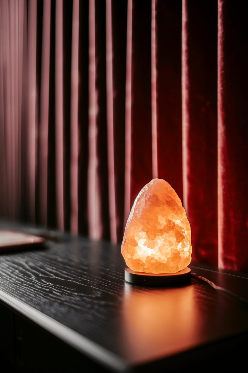 A Himalayan salt lamp is more than just a light source; it’s a piece of nature on your desk. Known for its calming properties, it emits a soft pinkish glow.