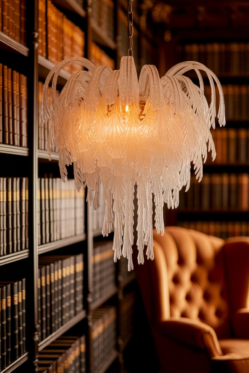 Chandeliers are not just for grand ballrooms; they can add a touch of luxury to any room. A frosted glass chandelier softens the light, creating a warm atmosphere.