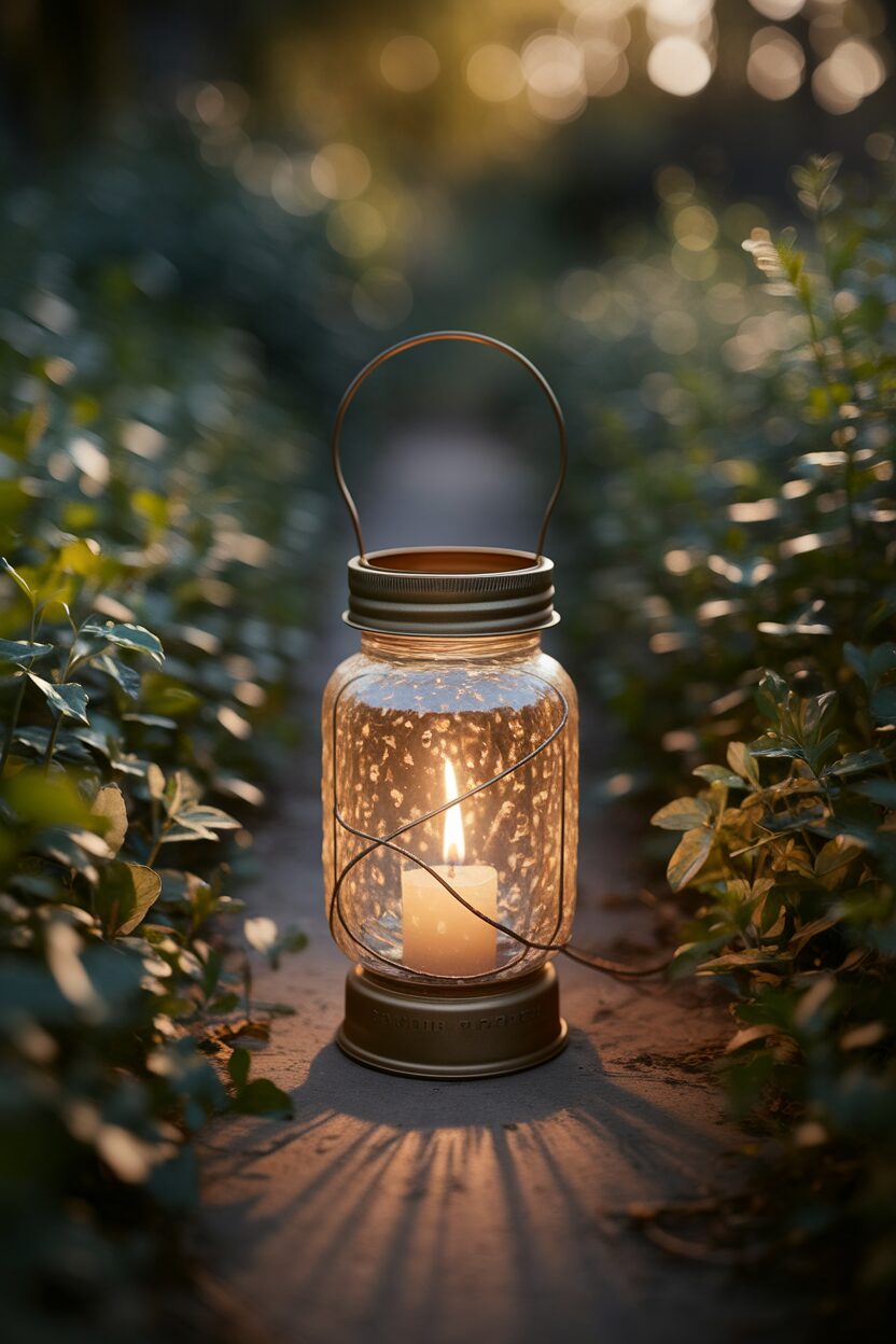 Mason jar lanterns bring a rustic charm to gardens. Filled with fairy lights or candles, they create a cozy vibe.