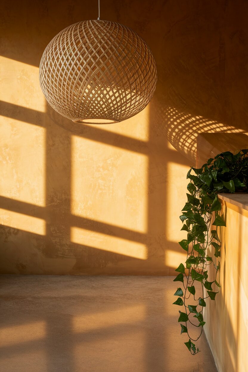 Look for pendants with an open weave design. They allow light to filter through beautifully.