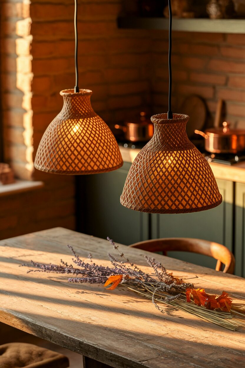 When choosing rustic pendants, think about incorporating natural elements. A tip is to match them with wooden furniture or earthy tones. This duo is a trendsetter in farmhouse-style interiors.