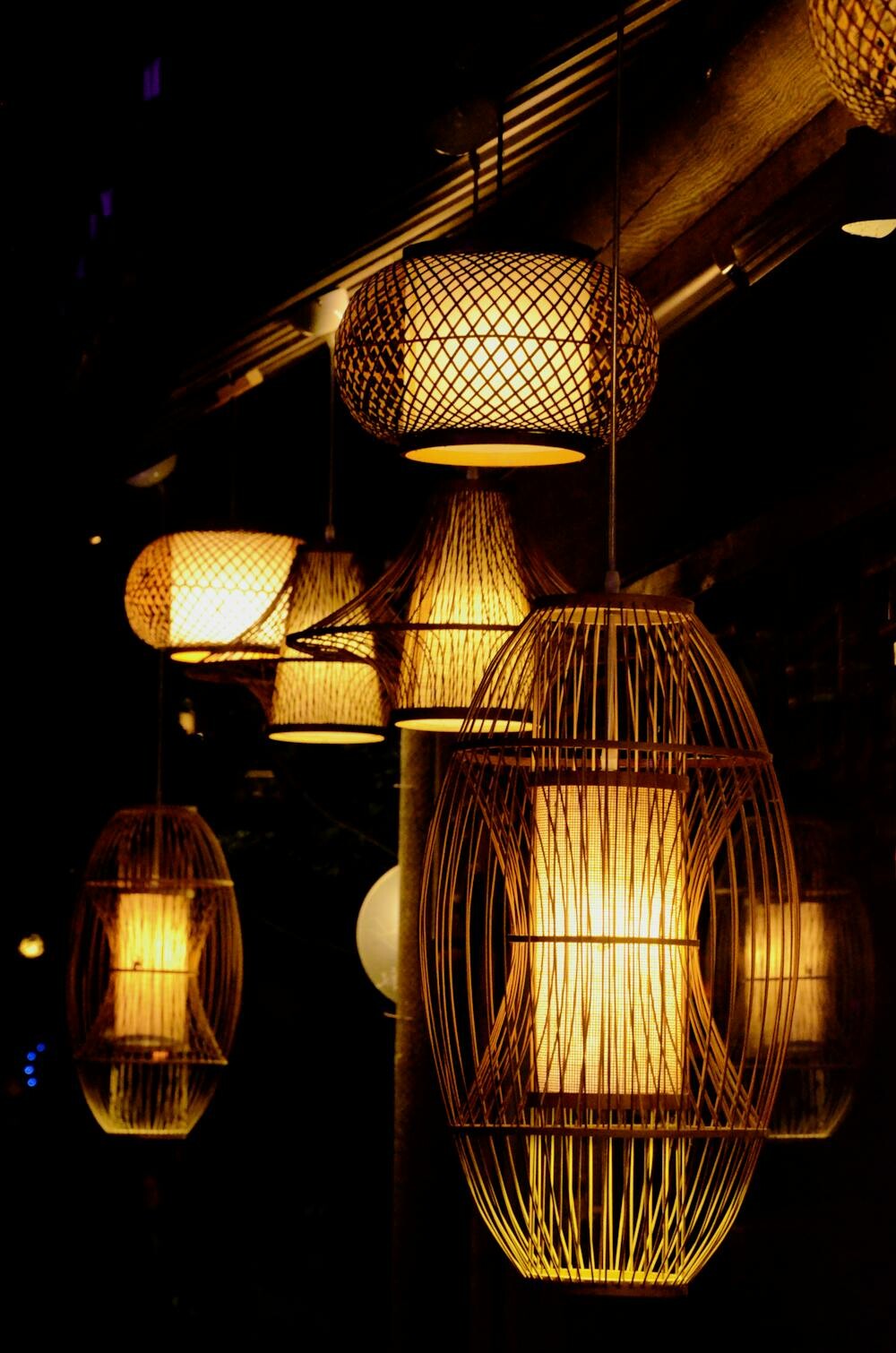 Bamboo lanterns add an earthy, natural touch. Their unique design casts beautiful shadows.