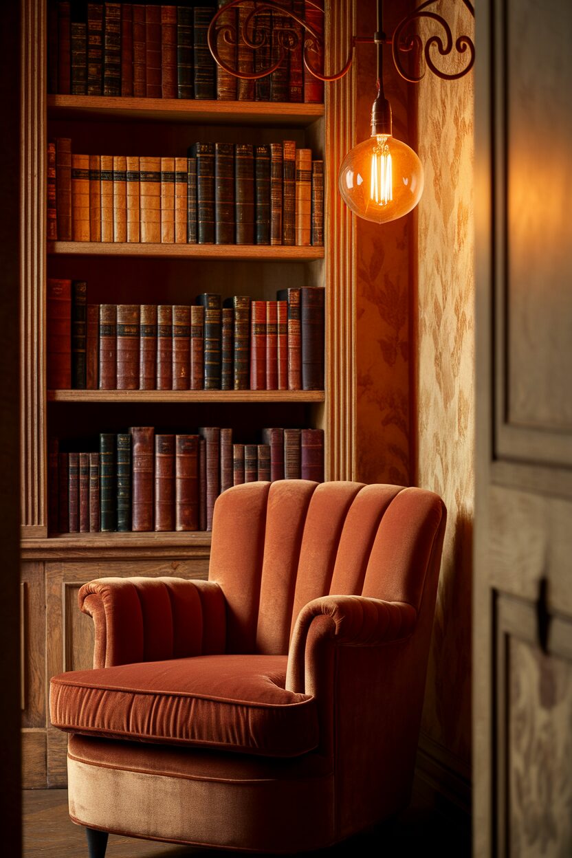 Craft a perfect reading alcove with warm bulb lighting. It creates a peaceful spot for getting lost in a good book.