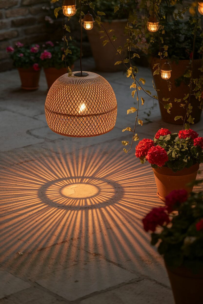 Outdoor spaces come alive with rattan lanterns. These lights add a bohemian vibe to your patio, perfect for summer evenings.