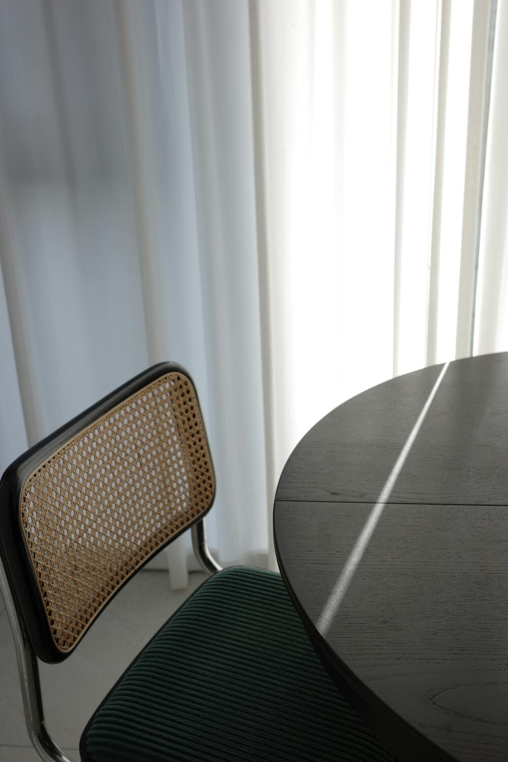 A rattan chandelier over the dining table brings elegance and a natural feel to mealtime. It’s like dining in a chic, tropical paradise.