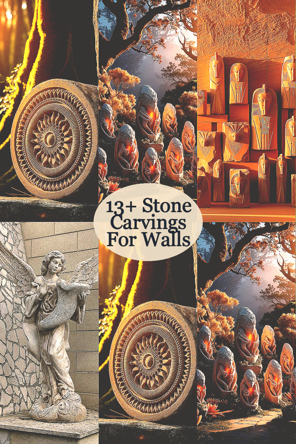 14 stunning stone carvings await to elevate your walls and inspire your decor vision—are you ready to enhance your space?