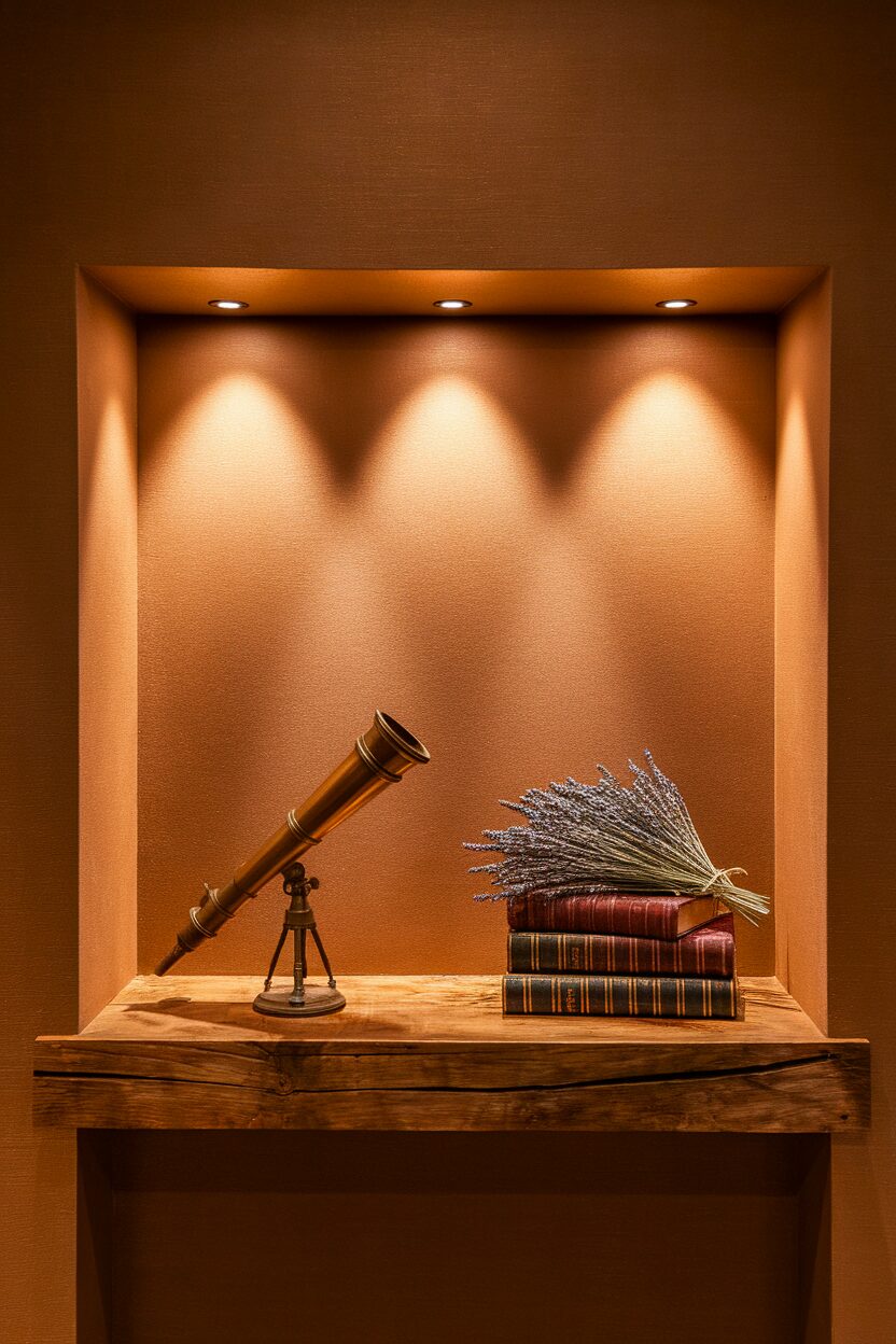 This idea maximizes space and offers a dynamic look. It’s perfect for displaying both art and treasures.