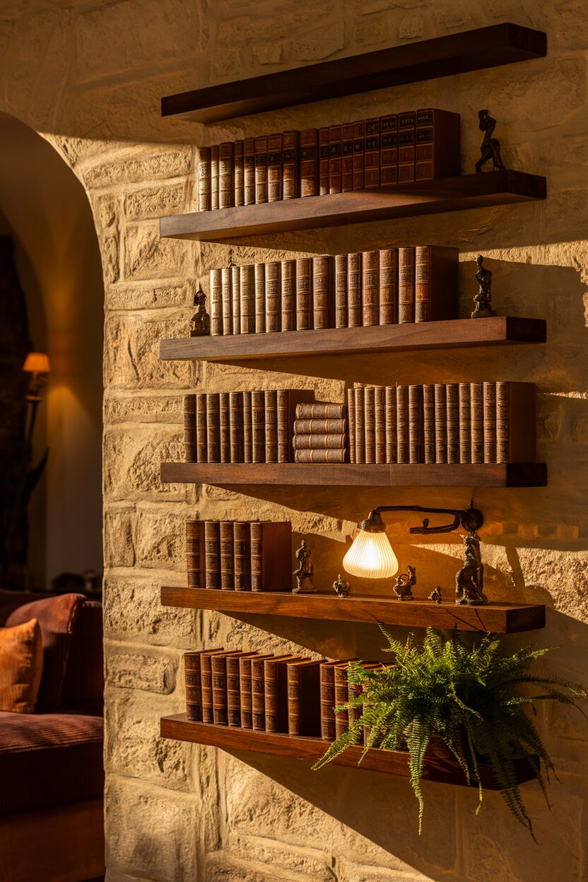 Create a bookworm’s haven by stacking your favorite books on layered shelves. It’s a great way to have your reads within easy reach.
