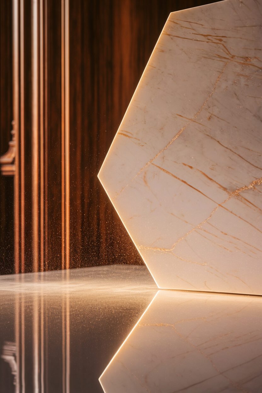 To enhance its beauty, use warm lighting. This creates a cozy atmosphere, highlighting the marble’s natural charm.