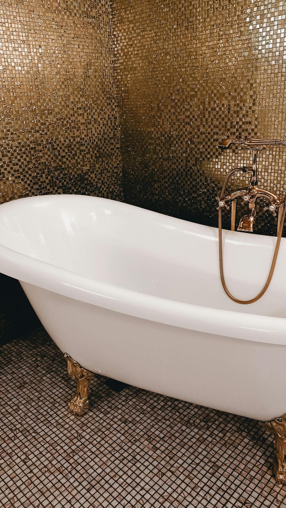 Gold leaf mosaic tiles add a touch of opulence and glamour to any wall. Their shimmering surface catches the light beautifully.