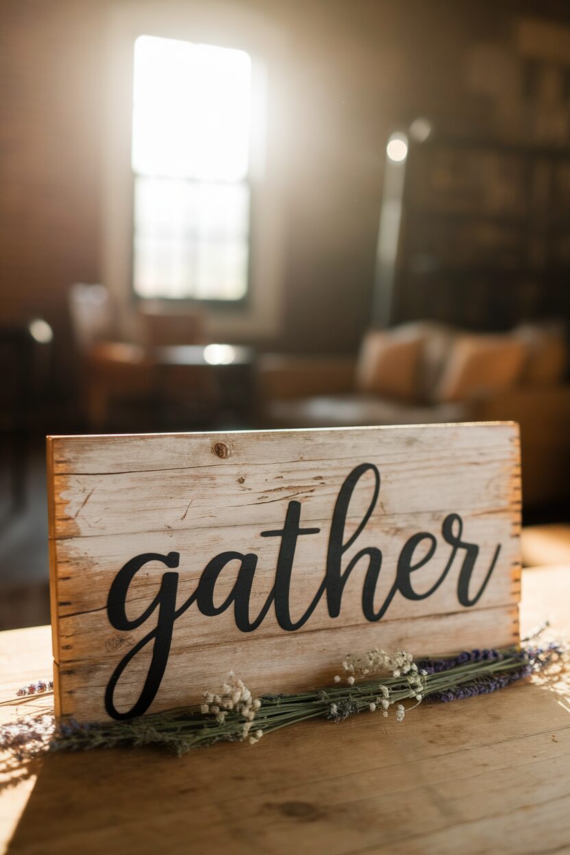 The “Gather” sign is perfect for dining areas or family rooms. It invites everyone to come together, share stories, and create memories.