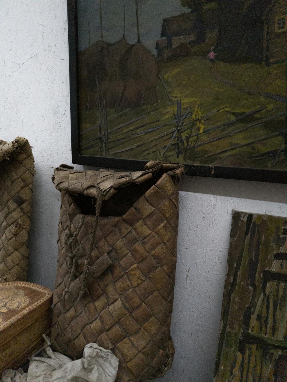 Rustic baskets can often be found at antique shops or estate sales. Prices vary, but haggling can sometimes lead to a bargain.